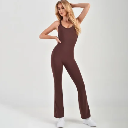 Women Fashion Sexy Solid Color Backless Sleeveless Slim Fit Yoga Jumpsuit