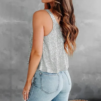 Women Fashion Casual Solid Color Sequin Sleeveless Tank Top