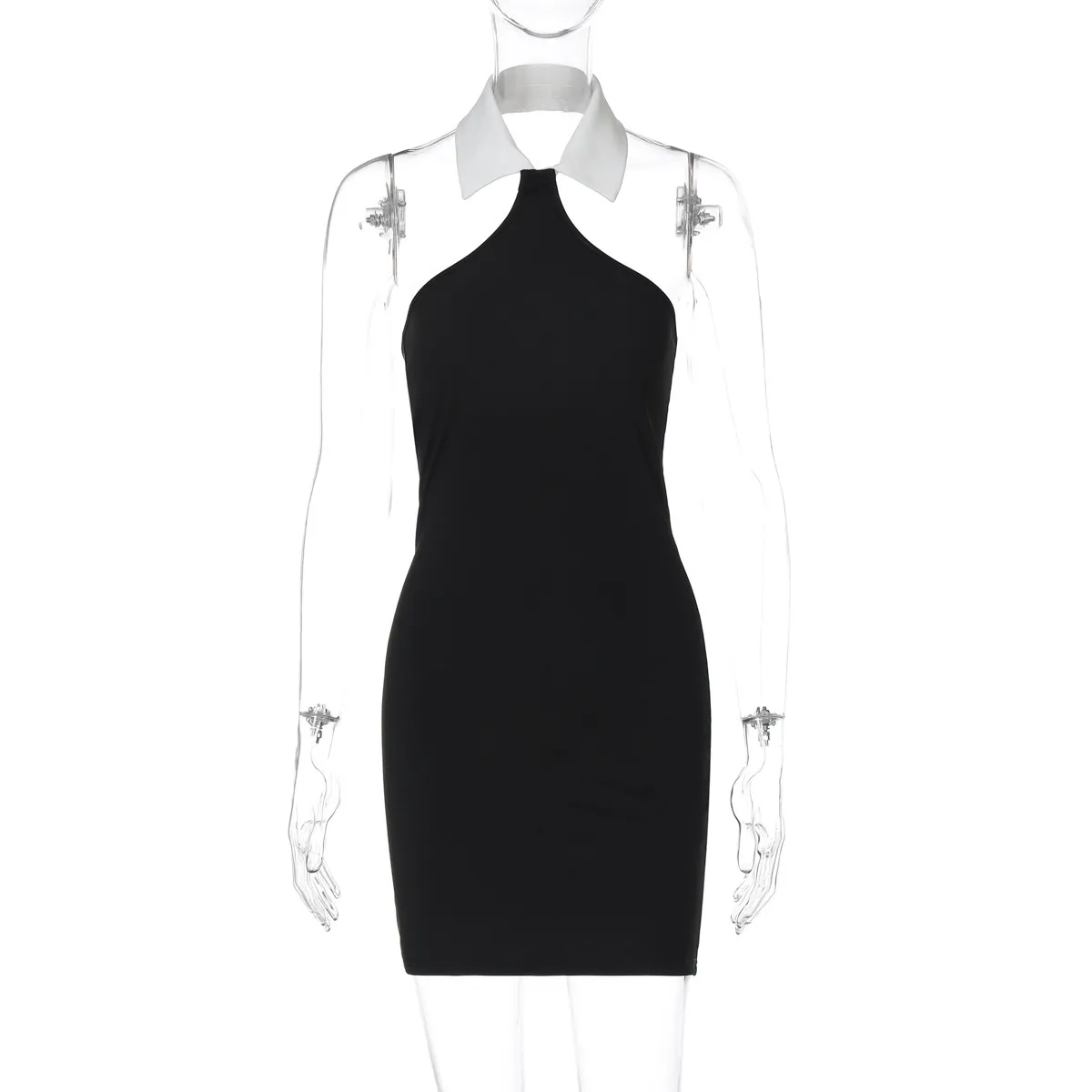 Women Fashion Sexy Solid Color Deep V Backless Sleeveless Dress