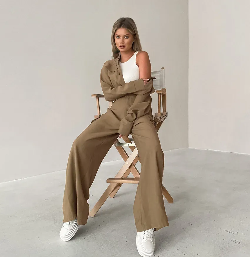 Women Fashion Sexy Pleated Collar Long-Sleeve Slim Fit Rompers
