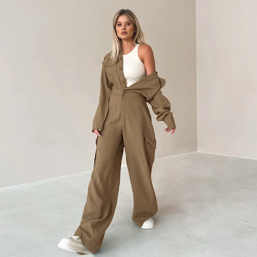 Women Fashion Casual Solid Color High Waist Wide Leg Pants